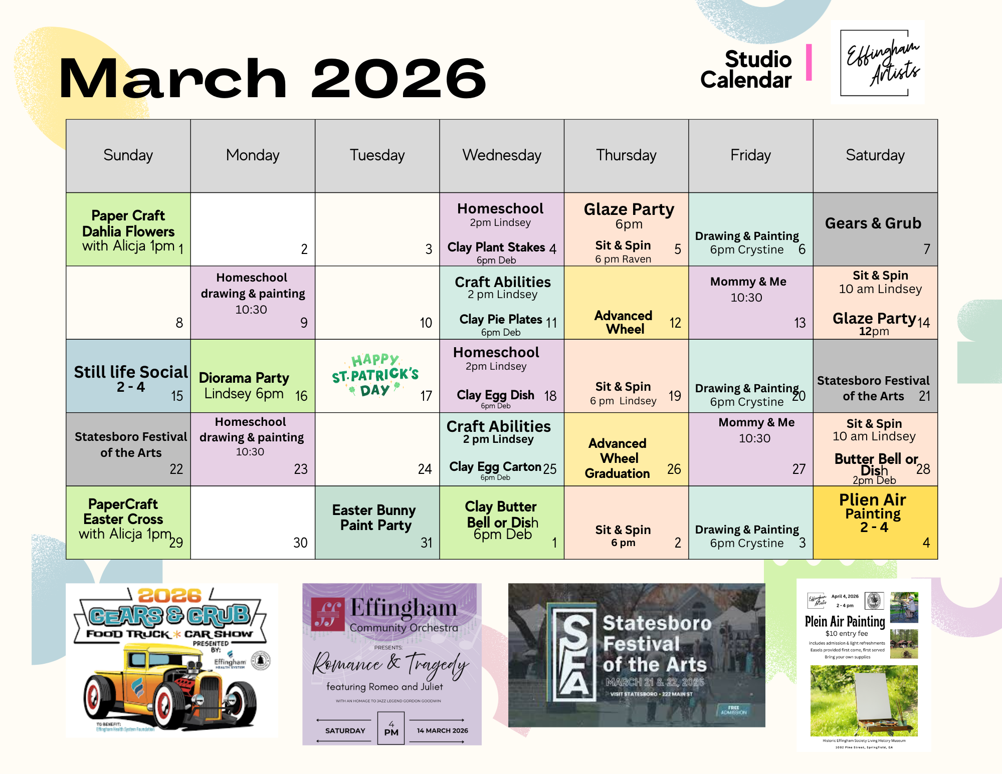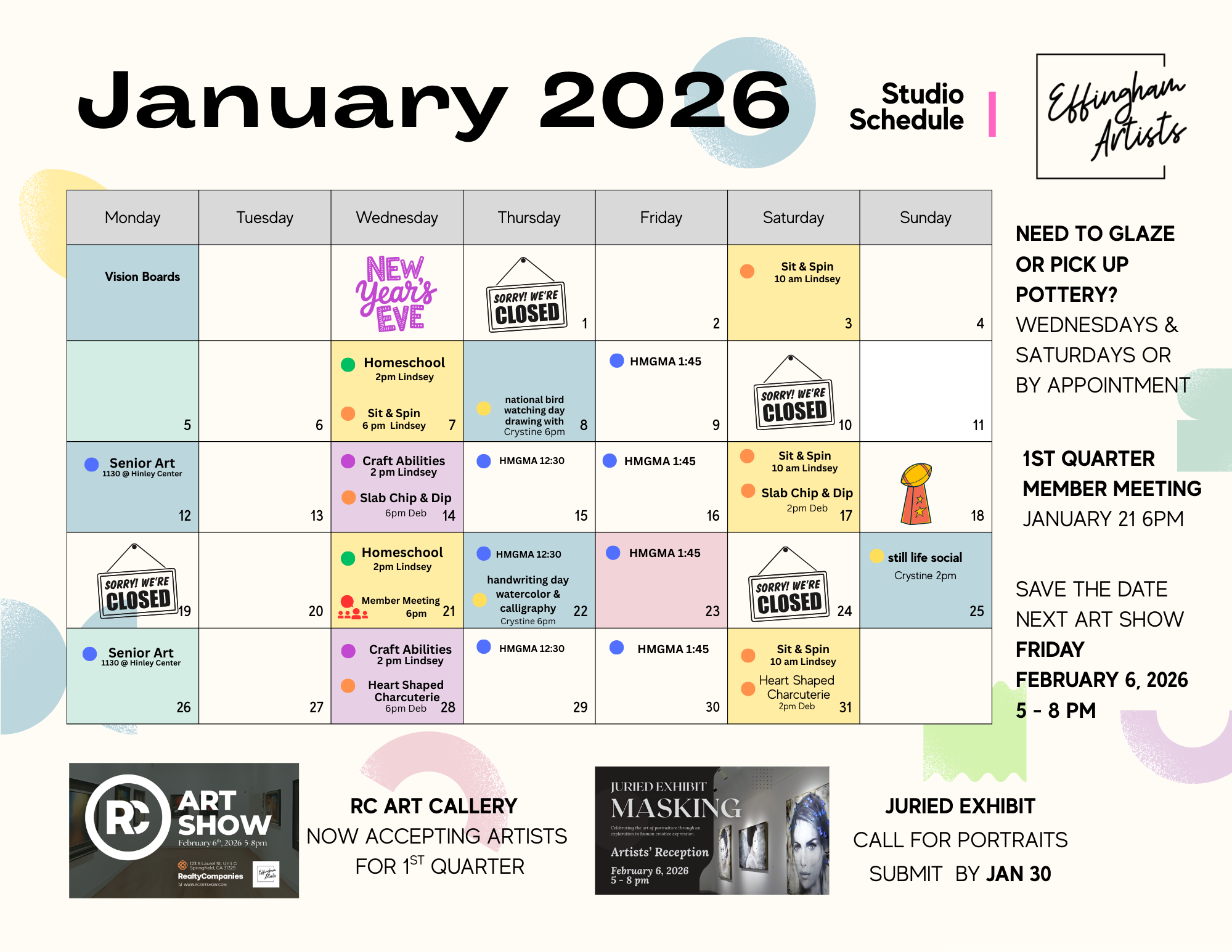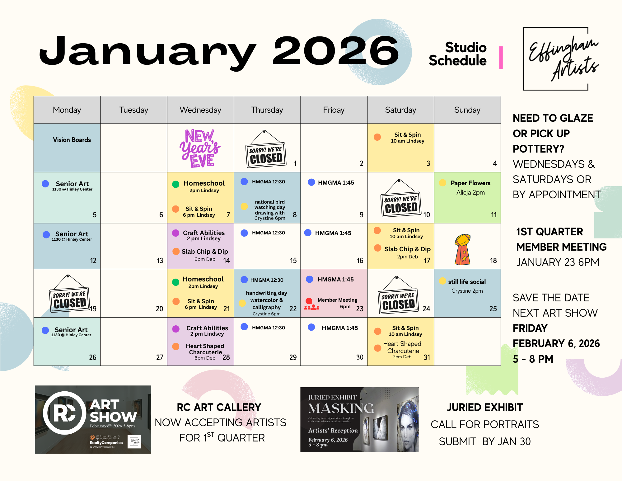 As a member, you have exclusive opportunities to showcase your art in Effingham, teach classes, and join exclusive artist socials.